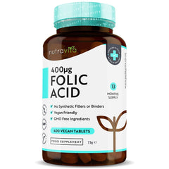Folic acid is a form of folate, which is a natural occurring B vitamin (Vitamin B9). Our high strength supplement provides you with 400ug of Folic Acid per daily serving (1 tablet). Each bottle contains 400 vegan tablets for a 13 month supply of Folic Acid. Our tablets contain no synthetic fillers or binders, and only using high quality ingredients.