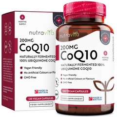 200mg CoQ10Nutravita's Co Enzyme Q10 contains naturally fermented and easily absorbed Coenzyme Q-10 or Ubiquinone per capsule. With 120 capsules per bottle at 200mg per capsule, you will be getting 24,000mg of CoQ10 per bottle. SHOP HERE