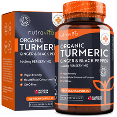 Our 3 month supply of high strength Organic Turmeric capsules have been formulated to provide with each 1440mg serving: 1340mg of Organic Turmeric (670mg per capsule), 80mg of Organic Ginger (40mg per capsule), and 20mg of Organic Black Pepper (10mg per capsule). SHOP HERE