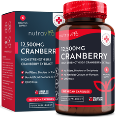Our unique High Strength Cranberry Extract supplement provides a potent 250mg of 50:1 Cranberry Extract per serving (1 capsule per day), which is equivalent to 12,500mg. The easy to swallow capsules contain the highest quality Cranberry Extract (Vaccinium Macrocarpon L.). This superfood has been used for centuries throughout the world for its many benefits. SHOP HERE