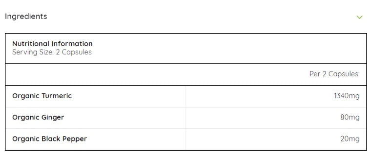 Each serving of the Organic Turmeric with Black Pepper and Ginger capsules contains:
